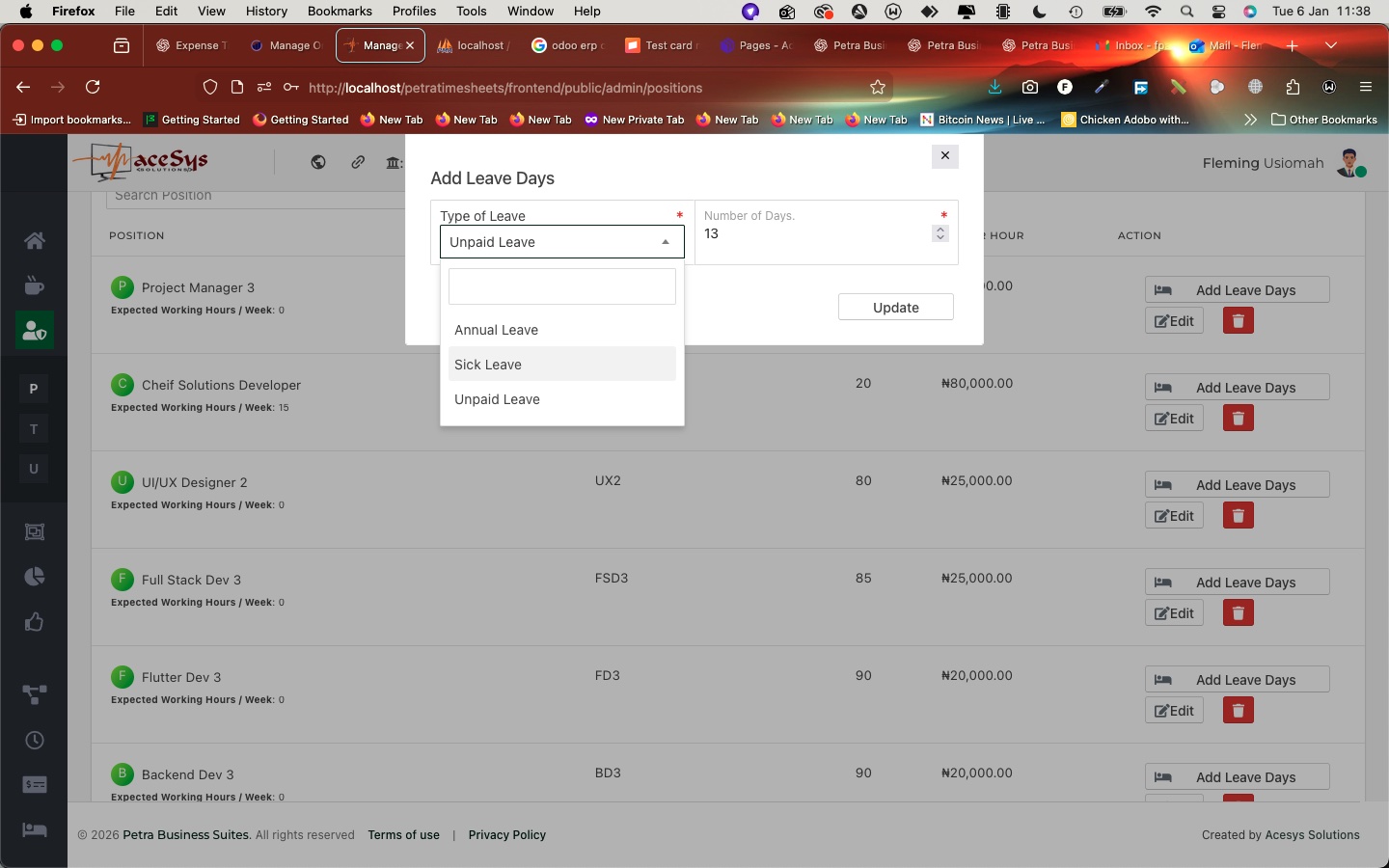 Leave days in Petra are position-based, not arbitrary per user. This ensures consistency—any staff member assigned to the same position follows the same leave structure.